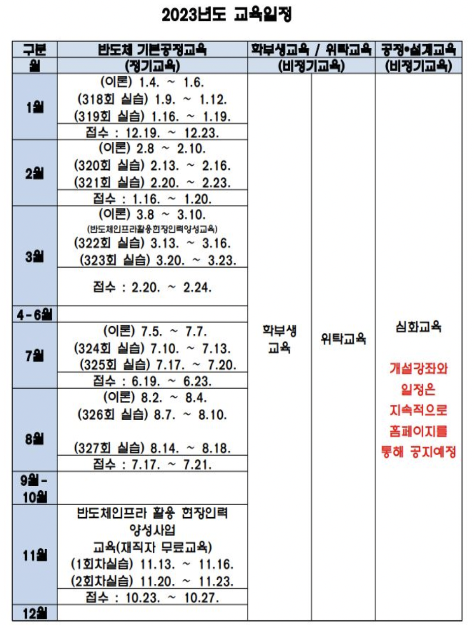 반도체 공정 교육 과정은 5일 70만원 수준으로 상당히 비싼 편이네요.