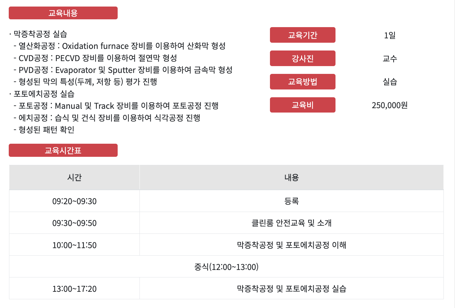 반도체 공정 실습 과정은 1일에 25만원입니다.