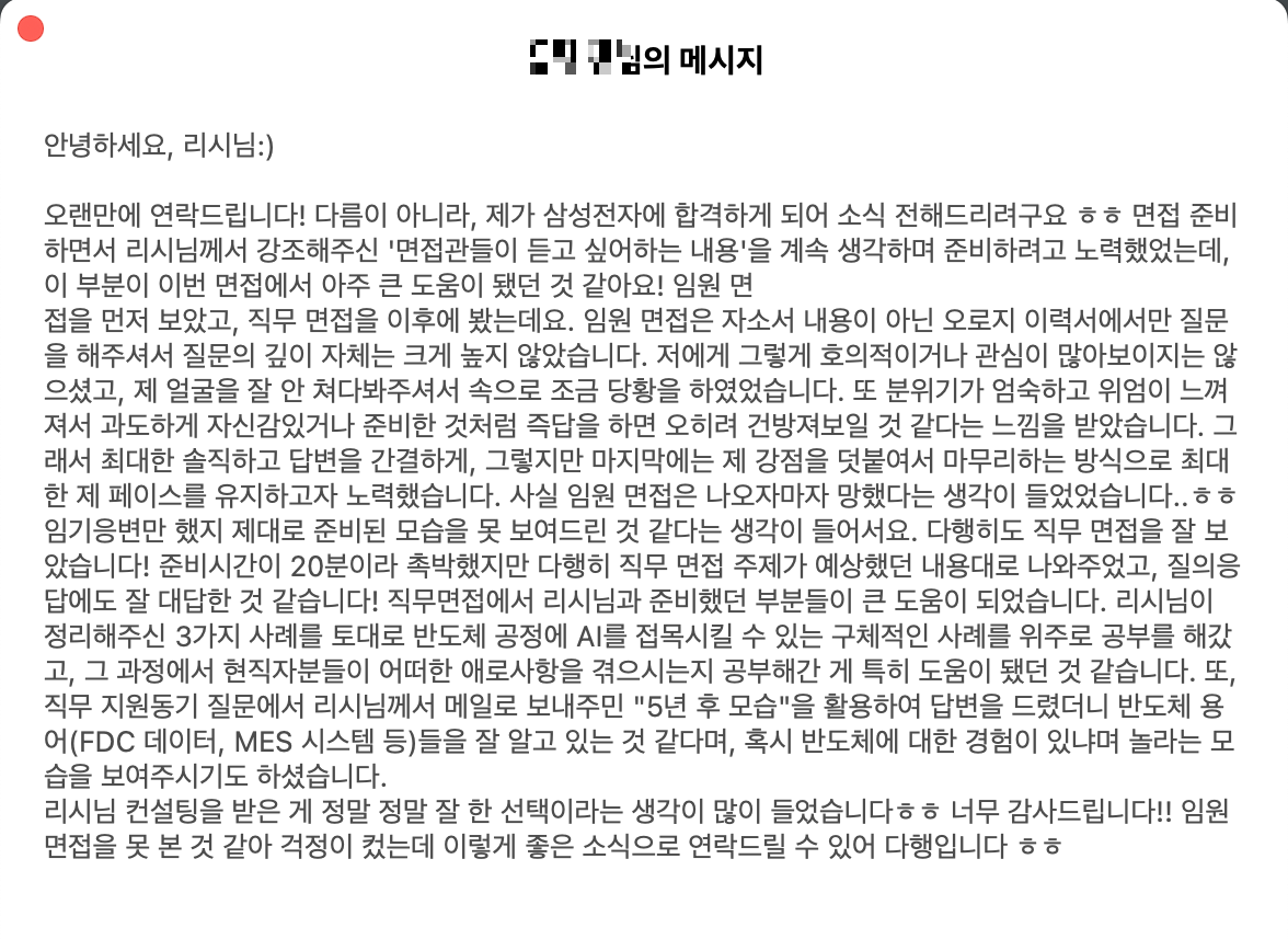 그게 결국 면접장에서, 그리고 인생에서 선택받는 사람의 태도라고 생각합니다.